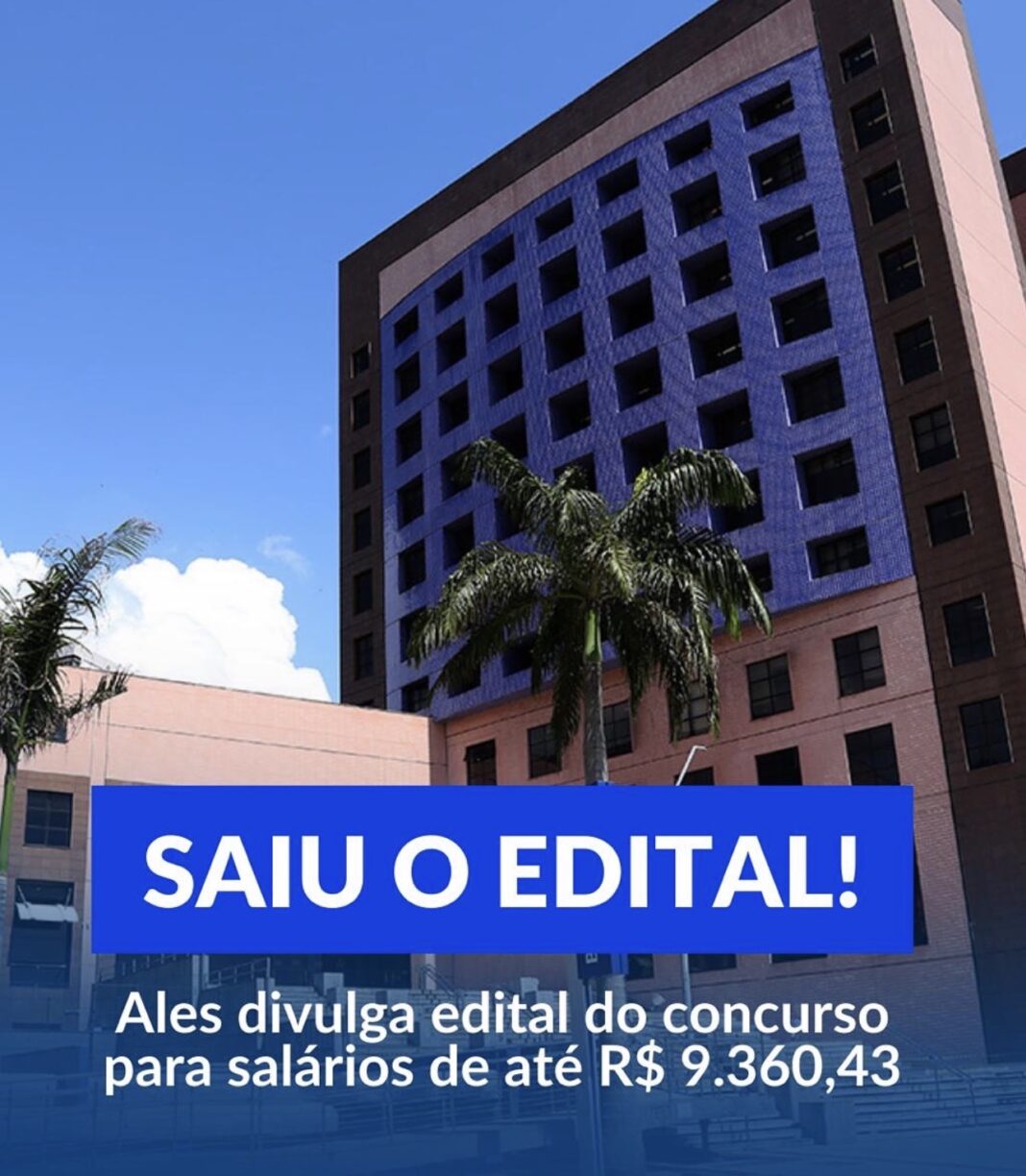 Editais do Concurso da ALES São Publicados com 35 Vagas e Salários de Até R$ 9,3 Mil