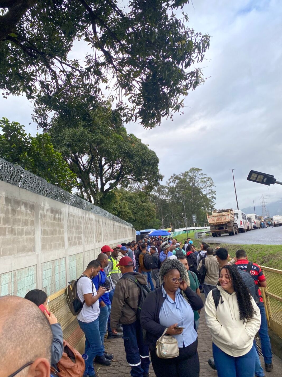 Com faixas e cartazes, os manifestantes ocupam a via em frente ao terminal, impedindo a passagem de veículos. O bloqueio já provoca retenções no trânsito e afeta a rotina de quem circula pela região.