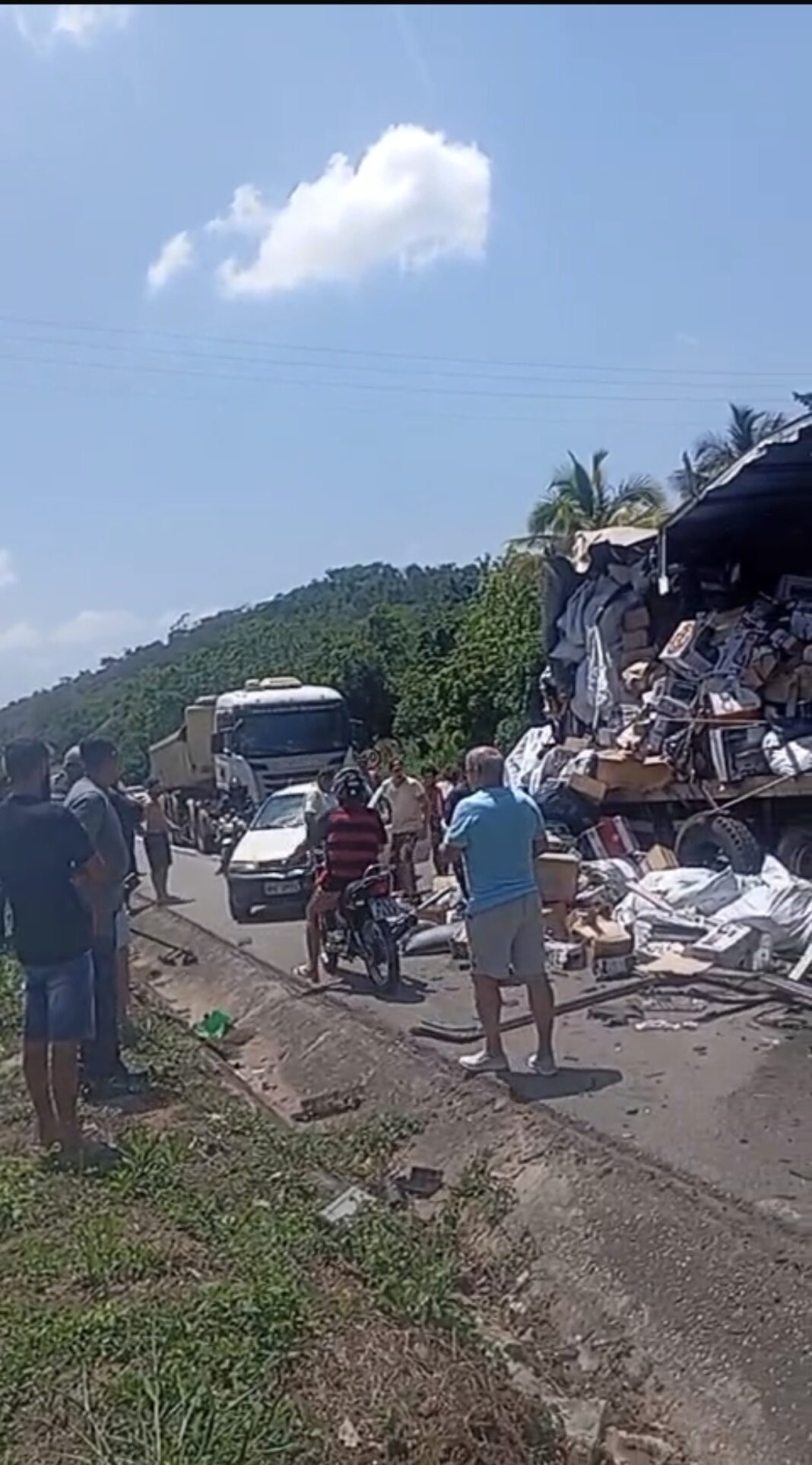 As imagens que circulam nas redes sociais mostram o momento em que o suspeito retira parte da carga e foge correndo, enquanto equipes tentavam organizar o trânsito e prestar socorro às vítimas. A ação causou revolta entre motoristas e moradores que passavam pelo local, gerando tumulto e atrasando o atendimento.