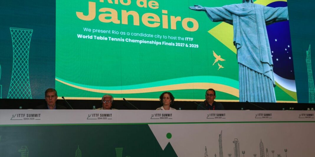 A cidade do Rio de Janeiro foi escolhida como sede da edição de 2029 do Campeonato Mundial de Tênis de Mesa. O anúncio ocorreu durante assembleia geral da Federação Internacional de Tênis de Mesa (ITTF) em Doha, no Catar. Esta será a primeira vez que a competição será realizada em uma cidade das Américas. O Rio concorria com Berlim (Alemanha), San José (Estados Unidos) e uma cidade na China ainda indefinida.