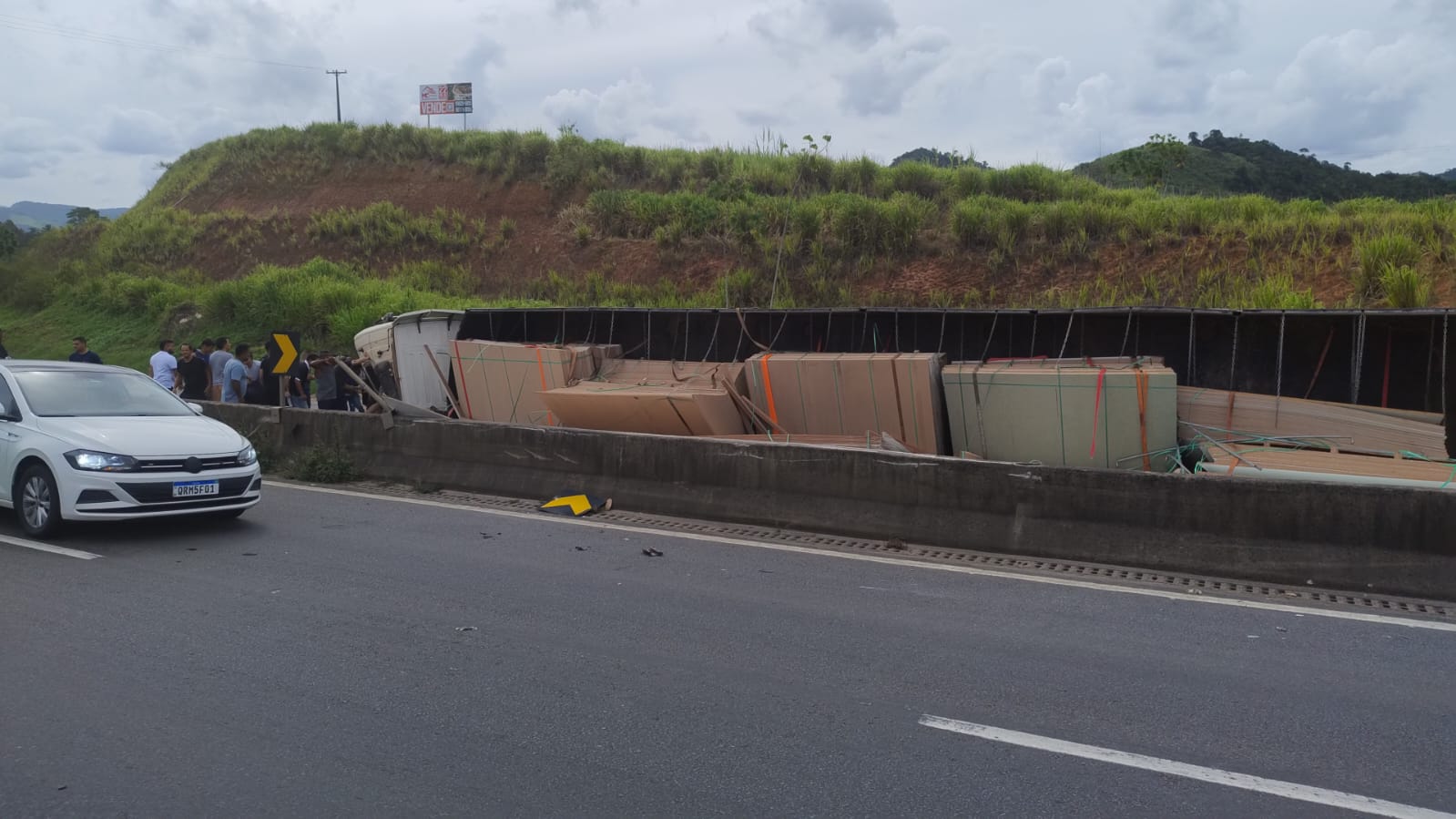 O acidente aconteceu por volta das 16h58, quando o veículo perdeu o equilíbrio e acabou tombando na pista principal, provocando a interdição parcial da rodovia. Duas faixas no sentido Vitória foram bloqueadas, e o fluxo de veículos está sendo desviado pelo acostamento.