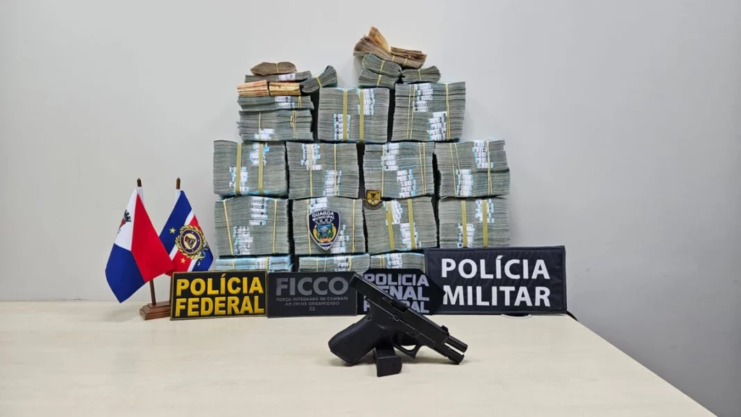 • Apreensões: mais de R$ 1,5 milhão em dinheiro vivo, arma de calibre 9mm e munições.