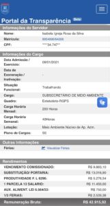 O acúmulo de cargos comissionados na Prefeitura de Vila Velha atingiu níveis alarmantes. A Subsecretária de Meio Ambiente, Isabela Igreja, além de responder interinamente como Secretária Municipal, manteve por quase dois anos a nomeação como Gerente de Fiscalização interina, o que lhe garantiu o recebimento de uma produtividade de aproximadamente R$ 11 mil mensais — valor superior ao próprio vencimento de Subsecretária, de cerca de R$ 9 mil.