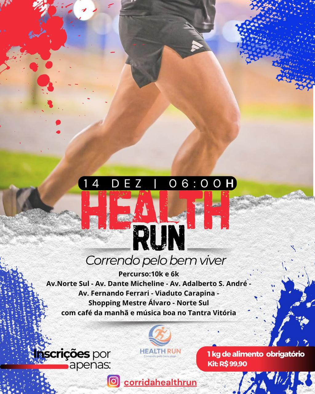 A capital capixaba será palco de um dos eventos mais esperados do calendário esportivo de fim de ano. No dia 14 de dezembro, às 6h da manhã, acontece a Health Run – Correndo pelo bem viver, reunindo atletas e amantes da corrida em um percurso que valoriza o bem-estar, a saúde e a solidariedade.