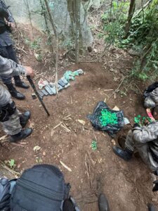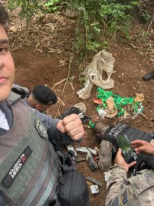 De acordo com as primeiras informações, a apreensão ocorreu após patrulhamento de rotina e levantamento de inteligência. Ao perceber a aproximação das equipes, indivíduos armados fugiram por uma área de mata, deixando para trás armas e drogas.
